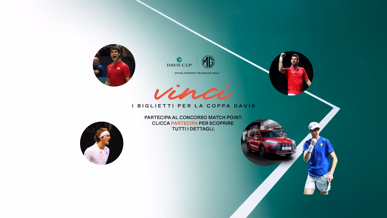 In occasione di questo importante evento sportivo, MG lancia il concorso “Match Point – Vinci la Coppa Davis con MG”, aperto a tutti i nostri clienti e appassionati.